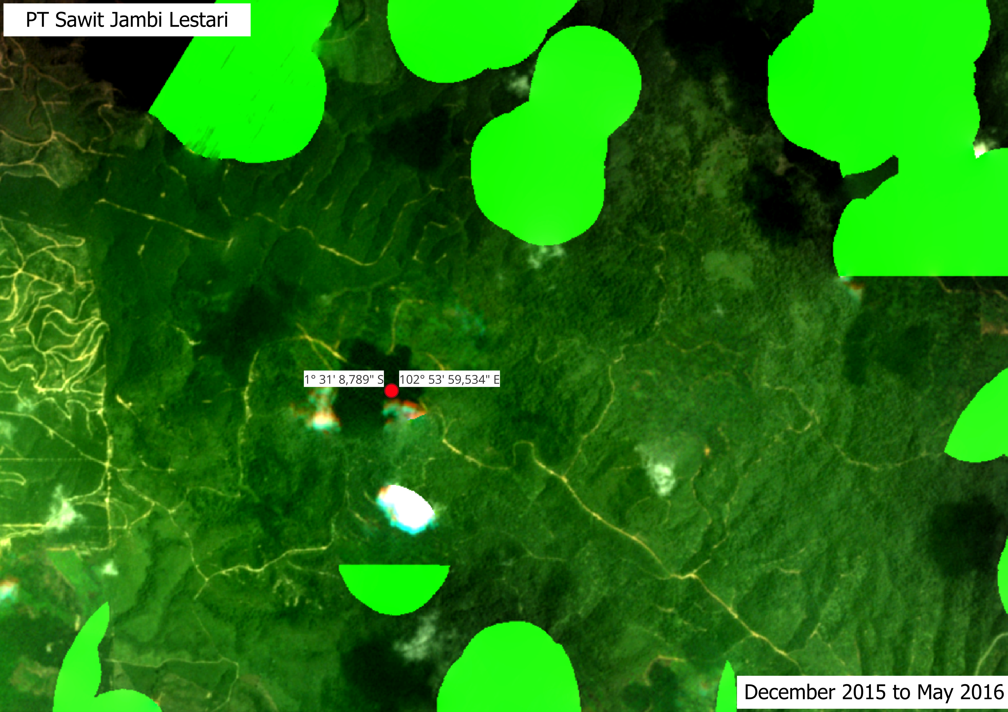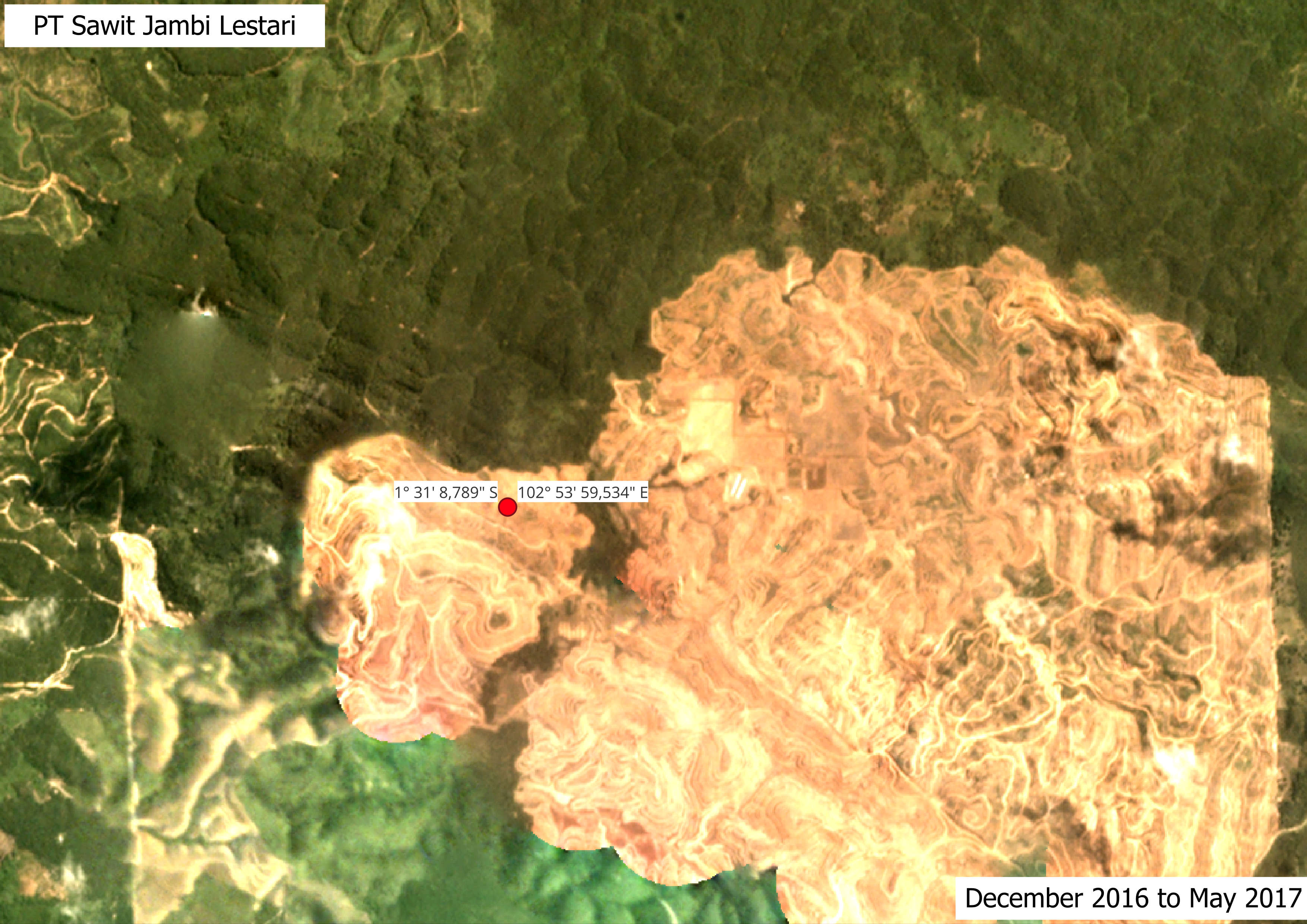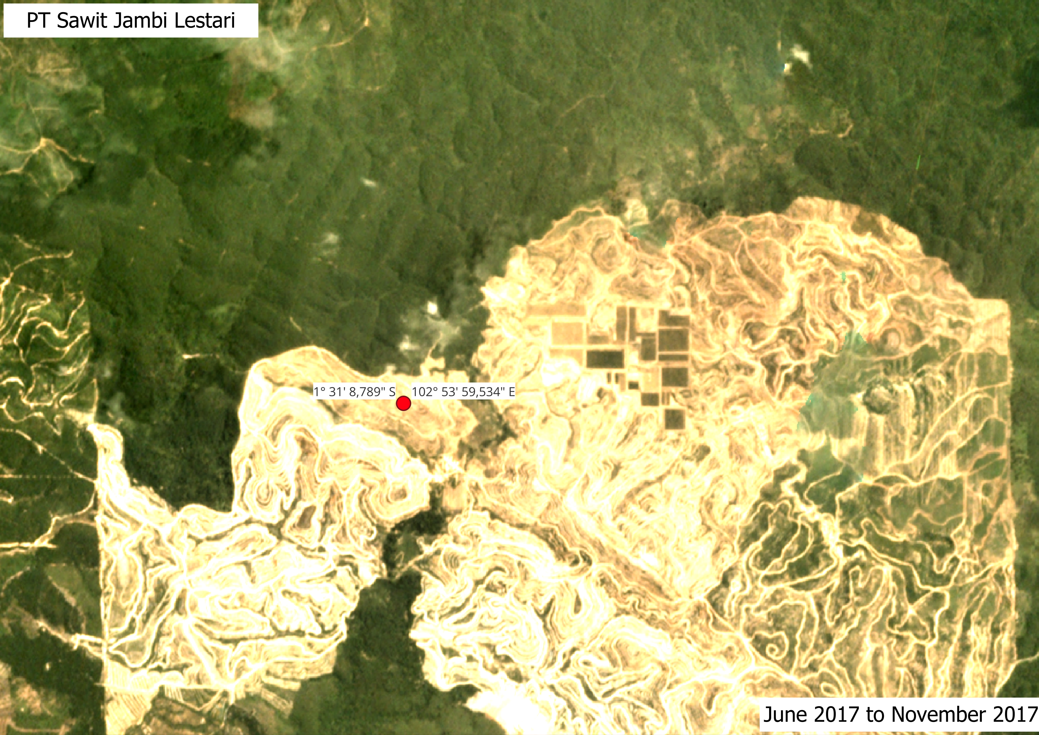 RGE stated that deforestation in a further two concessions — PT Mitra Unggul Pasaka and PT Rigunas Agri Utama — were areas occupied and cleared by local communities, and at PT Sawit Jambi Lestari, claimed that at the coordinates where deforestation was detected in 2017-2020 (highlighted in the image carousel above) “there was no secondary dryland forest or other indicative HCS areas.”