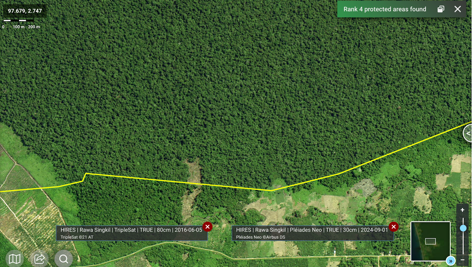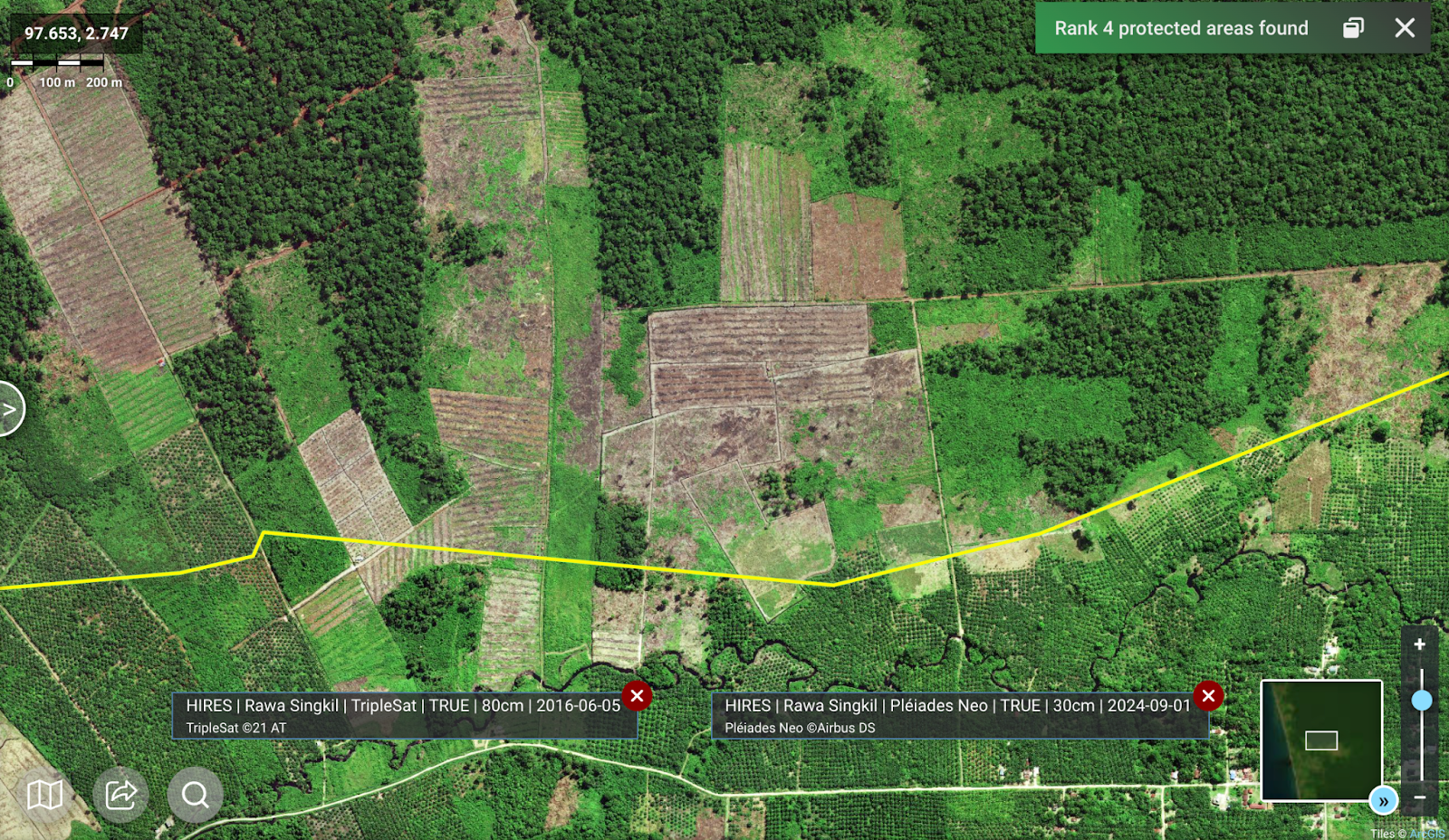 The following ultra-high resolution images, provided by the Airbus Pléiades Neo, are the first of their kind for the Rawa Singkil Wildlife Reserve, and can be found in full on Nusantara Atlas.