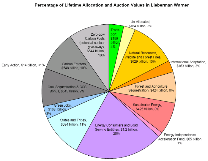 - According to an aide to Senator Lieberman, the bill “would be the most historic incentive for nuclear in the history of the US“. It is estimated that throughout various incentives in the bill $500 billion could go to nuclear power.