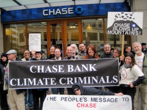 “Chase is set to take roughly 1.4 billion dollars in tax breaks this year. Instead of investing the communities whose tax payers have foot the bill for Chase’s tax breaks, Chase has invested in dangerous mining practices like MTR and dangerous mining companies like Massey Energy.”