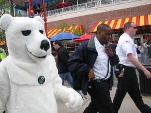 Of course, polar bears attract attention, including the attention of some of the Navy Pier authorities. After a brief escort back to the Greenfest, and a telling off, we were free to go. And the word that Bank of America funds coal and kills polar bears was heard loud and clear.