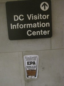 As I was leaving a meeting at the EPA, this image caught my eye. The poster reads “Blowing up mountains contaminates water and poisons people. EPA pledge to end mountaintop removal coal mining.”