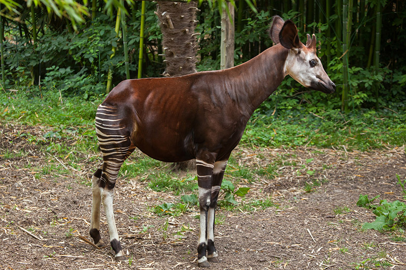 Despite our horizontal, zebra-like stripes, we’re actually the closest living relatives of the giraffe. Much like giraffes, we eat lots of food with our long tongues, digesting it with our four stomachs.